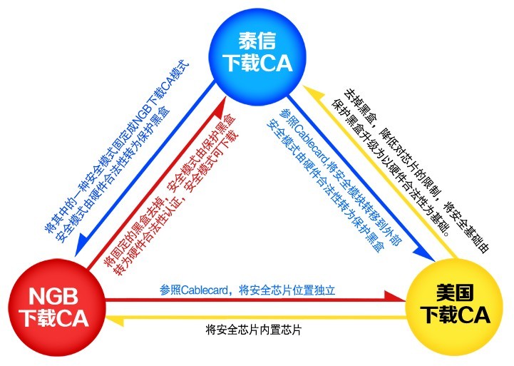 2012年,廣電總局頒布了《NGB可下載CA技術規范》,對下載CA進行了詳細的規范,并不斷對下載CA的實施進行新的嘗試。很多人認為,NGB下載CA是泰信在背后推動的結果,其實不然(參見《中國下載CA背后的故事(1)》)。