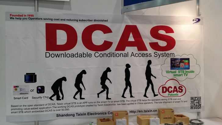 經過泰信展臺現場人員的講解,DVBCN記者了解到,下載CA就是將有線電視與互聯網融合在一起的關鍵技術。但在利益至上的資本主義國家,既得利益者促使下載CA技術沿著對其有利的方向發展,向每個終端設置固定黑盒,通過安全芯片黑盒代替智能卡繼續封閉整個產業鏈,導致美國下載CA技術在耗費巨資后夭折。8年后,廣播電視和互聯網這兩個本來可以融合的產業,到現在變成了二者的大對決。