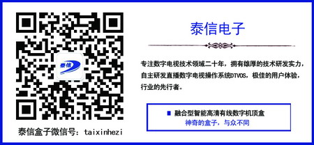 借助自主研發的直播電視操作系統DTVOS,實現有線電視、網絡電視、錄像機、游戲機等功能的融合的泰信盒子適用于全國,開啟了第四代機頂盒的新時代,是融合型智能機頂盒的代表。