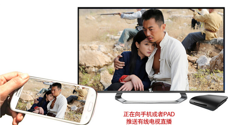 泰信盒子直播流推送功能,安裝泰信盒子手機助手,除了能將手機圖片、音樂、視頻等傳輸至電視屏幕,隔空互聯;還可將廣電有線電視推送到手機、pad等移動端觀看,讓直播節目除了在客廳電視上外,也能在臥室、衛生間、廚房等地觀看。