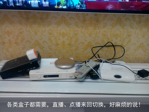 我是一位數(shù)碼愛好者,也是電視迷,平時(shí)就喜歡看各電視臺熱門娛樂節(jié)目,而老公喜歡看籃球和足球等體育賽事,可是他總是沒有時(shí)間看電視直播,很遺憾,于是我每次都只能用DV給他錄下來。家里一直用著廣電機(jī)頂盒看直播,同時(shí)還買了幾臺網(wǎng)絡(luò)盒子一起來把玩,就是看不同電視節(jié)目時(shí),需要不斷更換盒子,太麻煩。