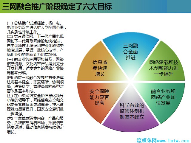 無論是廣電、電信,已經(jīng)把這個綠燈開了,這個綠燈打開給雙方都機(jī)遇,同時壓力也是實(shí)實(shí)在在擺在面前。再看政策、環(huán)境,以及其他保護(hù)已經(jīng)不可能了。這里面就是六大目標(biāo)里面排在第一位的。