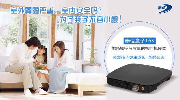 我們的生活中經常關注室外空氣質量,往往忽視了室內環境,室內污染氣體濃度若大于1.5PPM室內環境已不適合居住;泰信盒子T6S將會通過電視大屏實時提醒,告知用戶進行預防。如煤氣泄露易引起一氧化碳中毒,若不及時發現將有生命危險。一氧化碳PPM>50,已經超出成人所允許的最大含量,兒童更易受到傷害。因為兒童好動、自我保護能力較差、免疫功能不健全,是環境污染的最大受害者。