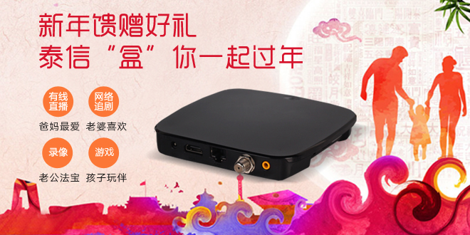 春節放假轉眼即到,大家都開始忙著搶購年貨,精心為親朋好友選擇禮物。往年面對五花八門的商品,如衣服、煙酒、特產等不知如何選擇,頭疼不已。而今年隨著“互聯網+”步入人們的生活,數碼電子產品成為新年禮物的首選,都想讓家人感受科技創新帶來的便利。市面上獨具廣電有線電視和網絡電視功能的泰信盒子最適合老年人和兒童,據說已成為最搶手的年貨。