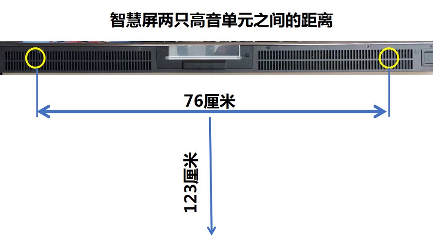智慧屏的音箱采用了環(huán)形喇叭,紙質(zhì)盆,喇叭邊是橡膠或泡沫的,高音是絲膜的,因為一體化的電視機(jī)拆卸困難,只在外部大體測量,喇叭數(shù)據(jù)見上圖,單位是毫米,音箱腔體容積廠家給的數(shù)據(jù)是1.6L。