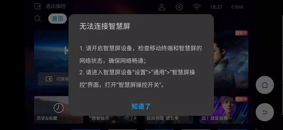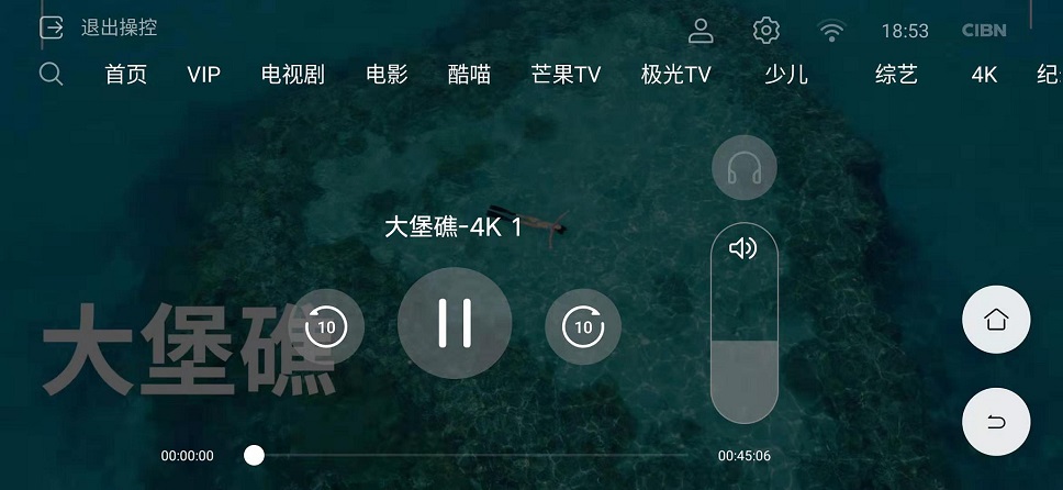 在手機(jī)電視換臺(tái)和音樂(lè)播放界面,手機(jī)音量鍵也是電視音量鍵,非常方便。