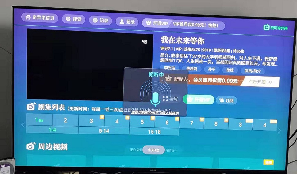 從愛奇藝點(diǎn)播切換到“中央4臺(tái)”