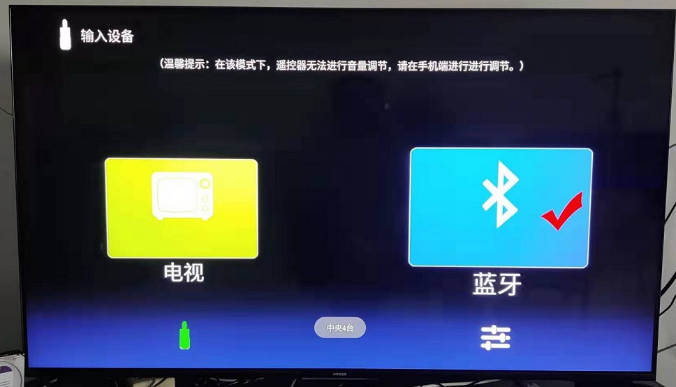 從藍(lán)牙音箱模式切換到“中央4臺(tái)”,關(guān)掉電視也可以操作。