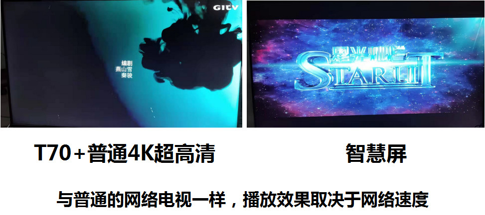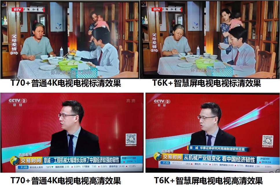 把T70與T6K對(duì)調(diào)效果一樣。這說(shuō)明,如果連接普通高清電視,T70和T6K沒(méi)什么區(qū)別,普通電視與智慧屏也沒(méi)啥區(qū)別。