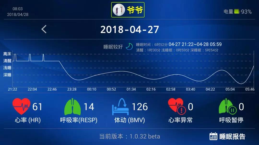 在電視大屏和手機小屏上都可以展示睡眠健康信息,方便老人和子女觀察。