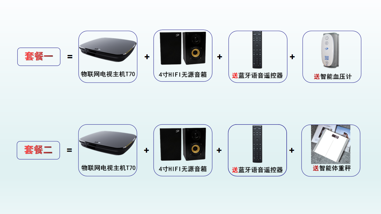 套餐一:送智能血壓計(這款血壓計是泰信自主研發(fā)的,一鍵測量、智能加壓,可以語音播報并查看歷史測量數(shù)據(jù))!