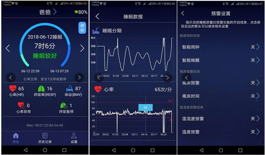 在電視大屏和手機小屏上都可以展示睡眠健康信息,方便老人和子女觀察。 這是一個上班族對媽媽夜晚睡眠數(shù)據(jù)報告的解讀。借助人工智能,使用傳感器的時間越長,分析的結(jié)果就越準確。