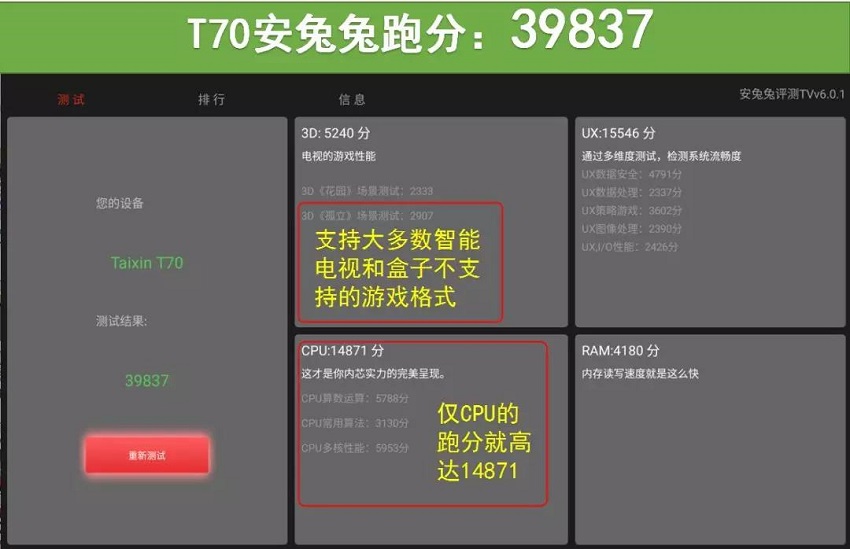 T70的性能超過了絕大數(shù)旗艦智能電視和盒子,完全滿足運行高性能應(yīng)用的要求。