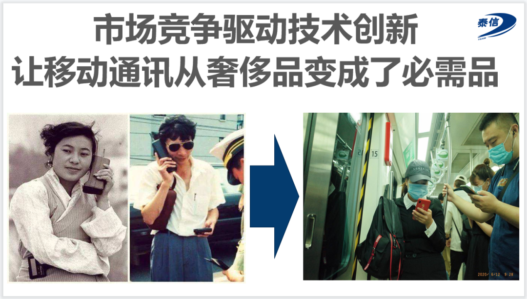 市場競爭驅(qū)動技術(shù)創(chuàng)新,促使電信服務(wù)價格越來越低,從奢侈品變成了必需品,市場規(guī)模反而越來越大,成為公共服務(wù)的重要組成部分。
